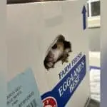 Morning light touched the shelter gate, and everything felt quiet and still. A worker walking up the path noticed a small cardboard box sitting alone …