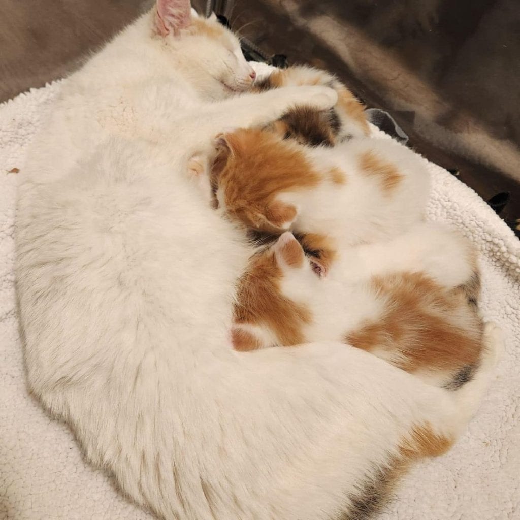 Christina visits them often, still amazed that a simple moment — a stray cat crossing her path — led her to an entire family in desperate need of help. One brave mama, one struggling daughter, and a pile of newborn babies are now safe because she stopped, listened, and followed where her heart led.