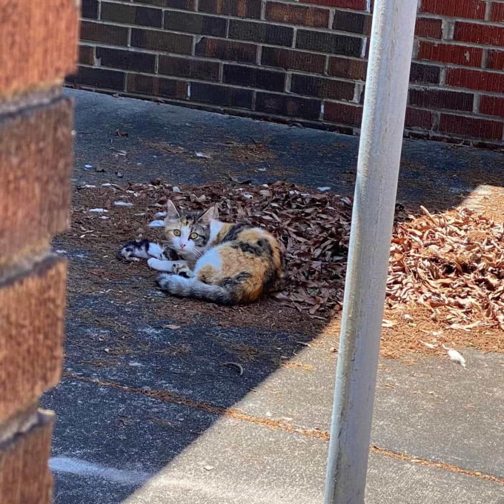 Christina gently checked the babies and realized that these weren’t just two random feline families living side by side — they were generations of cats caring for one another the best they could.