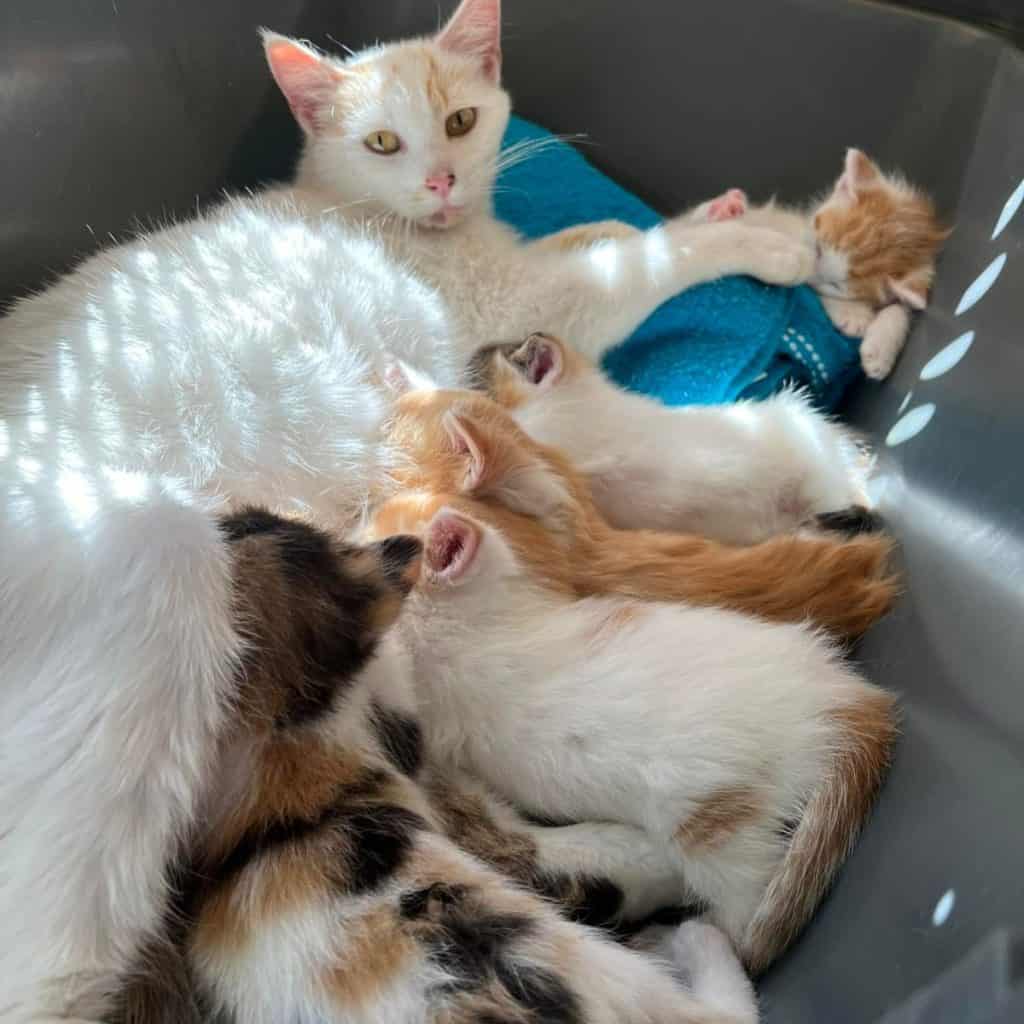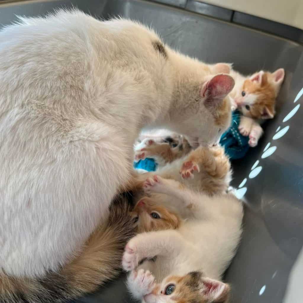 Within hours, the rescue team arranged foster homes for every single member of the feline family.