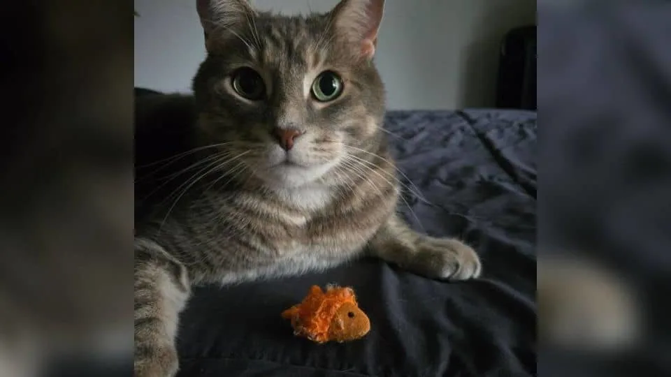 The toy became more than something to chase — it was part of Walter’s emotional world. For a cat who guarded his feelings so carefully, this battered orange fish was the one thing he openly adored.