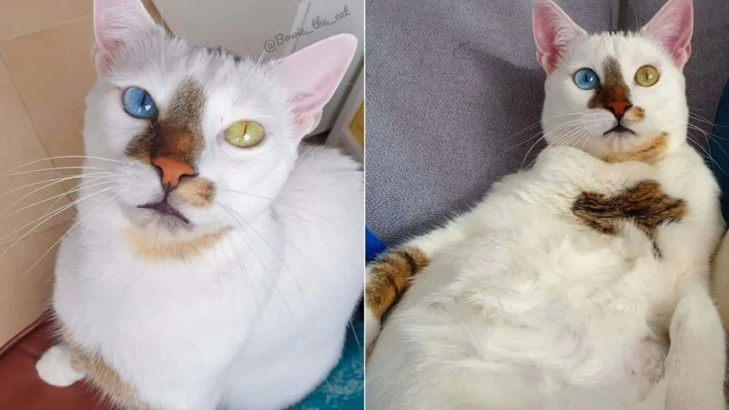 Maria discovered that cats with a “white spotting gene” could have eyes like his, yet Bowie simply thought he was made this way so Maria could find him.
