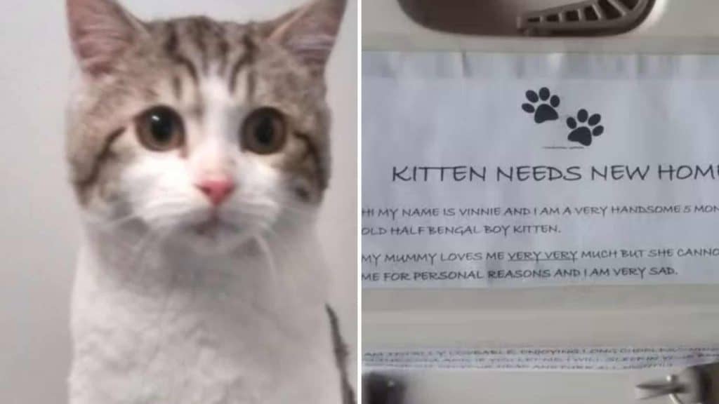 But Vinnie wasn’t alone in that little carrier. Beside him were a few toys, a small amount of food… and a handwritten note. Whoever left him behind had taken the time to write out a message, as if they hoped someone kind would find him.