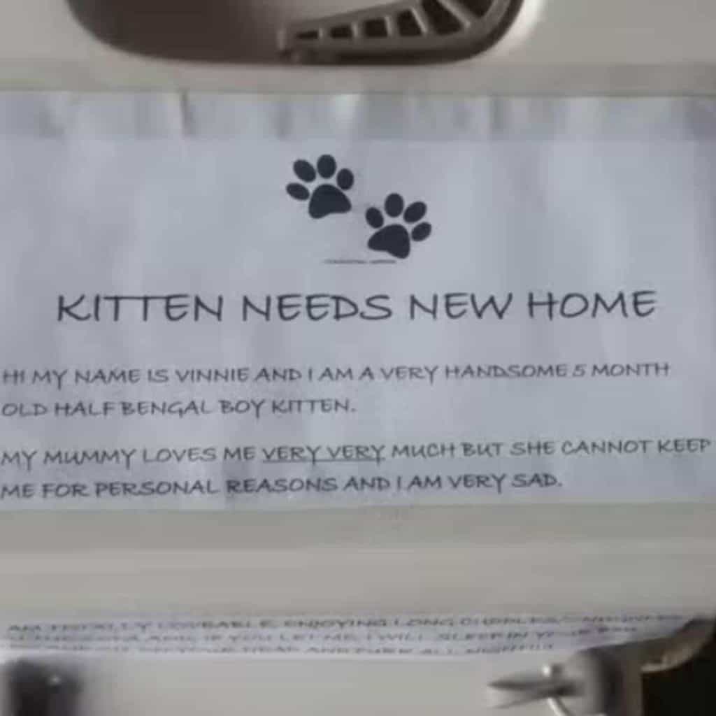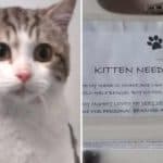 The note introduced him gently, calling him a “very handsome” young kitten and explaining that his owner loved him deeply but could no longer keep him.