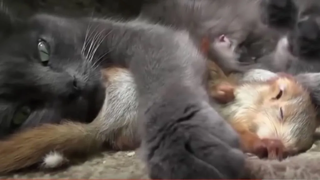 Other times, a kitten would curl up with a squirrel and fall asleep, their small bodies touching without fear.
