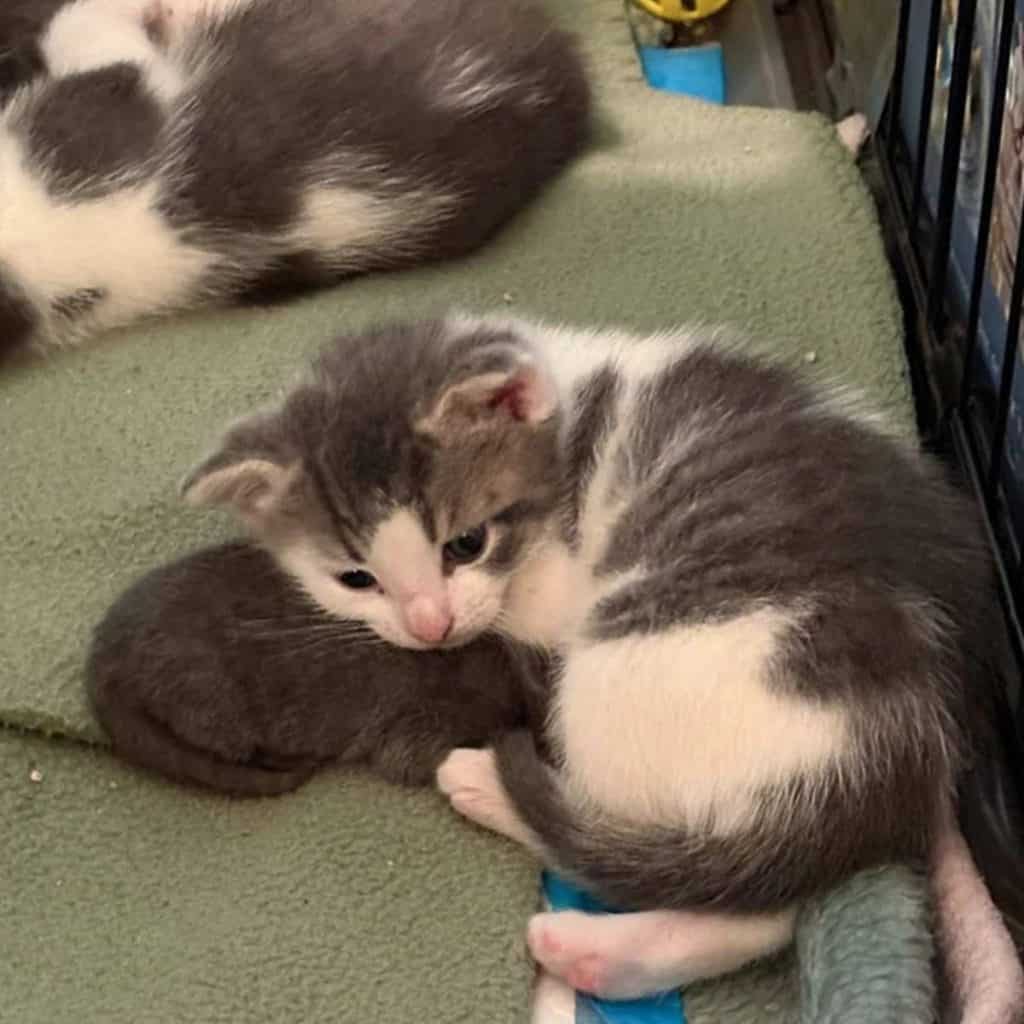One quiet afternoon, Leanne came across another heartbreaking sight: four newborn gray kittens curled beside a stranger’s front steps. No mother cat was in sight.