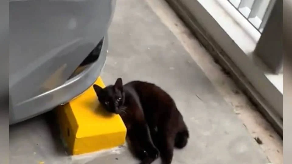 For months, a small black cat sat alone in the same parking lot, her soft cries blending with the sound of engines and footsteps. The world passed her by, and no one stopped long enough to care. People called her “the cat that never stops meowing,” but all she ever wanted was to be heard. She curled herself up on cold concrete, resting against the edge of a parking space, dreaming that maybe someone would one day love her again.