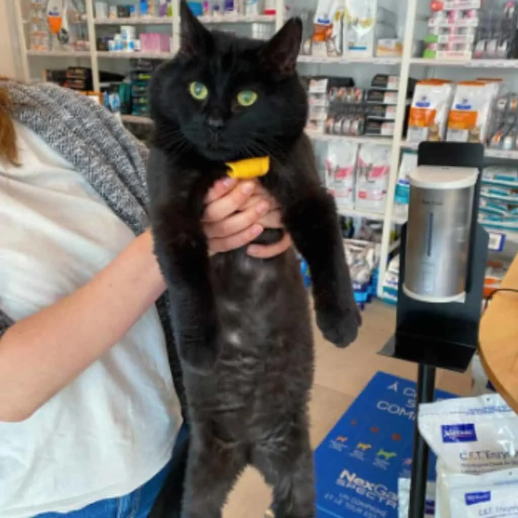 One day, a volunteer named Elizabeth stepped into the clinic and saw Buggy sitting proudly on the counter like he owned the place.