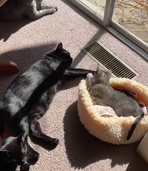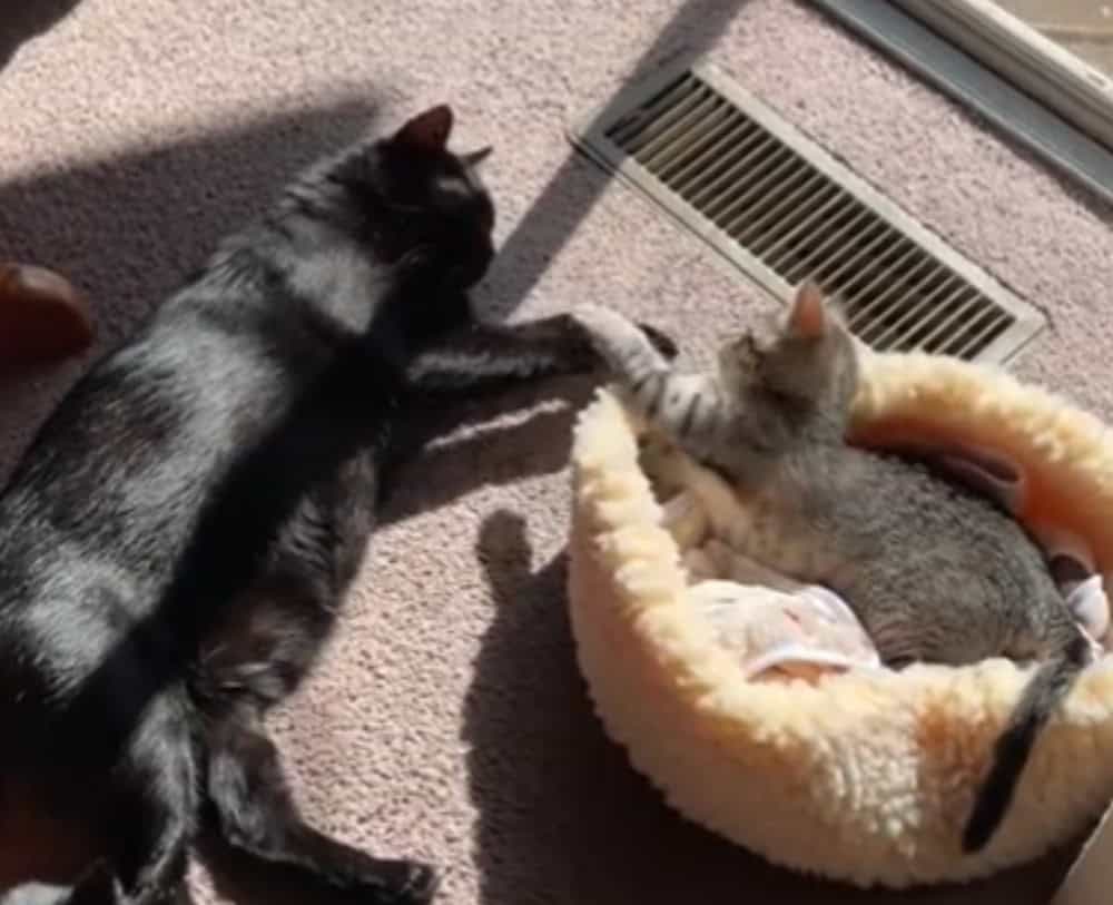 At first, the older cat acted annoyed.