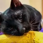 He tucked his head under the black cat’s chin.