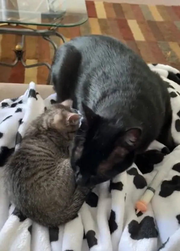 Then he pressed his body against the older cat’s side.