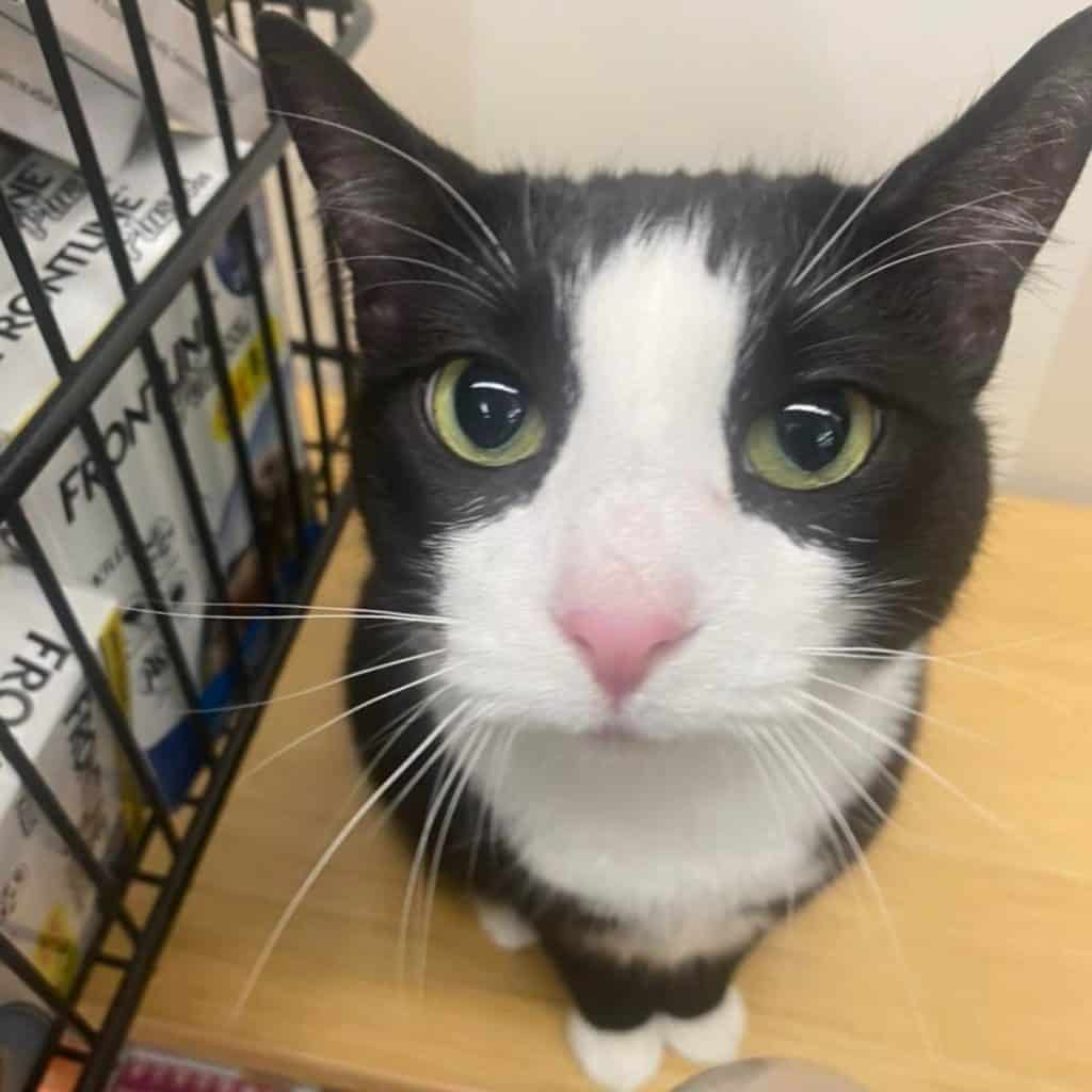 Other cats surrounded her, each with their own sad story and hopeful eyes.