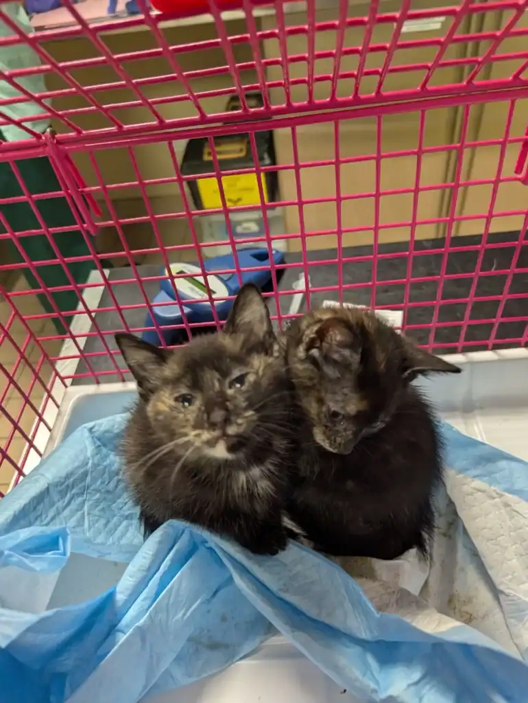 The kittens had red, painful eyes and were fighting conjunctivitis, leaving them squinting and uncomfortable.