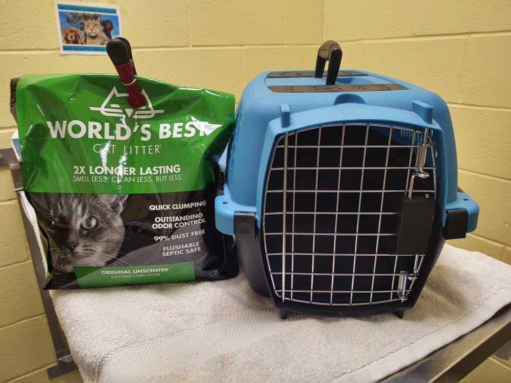 The staff carried the carrier carefully into the admitting area, speaking softly to reassure the frightened animal.