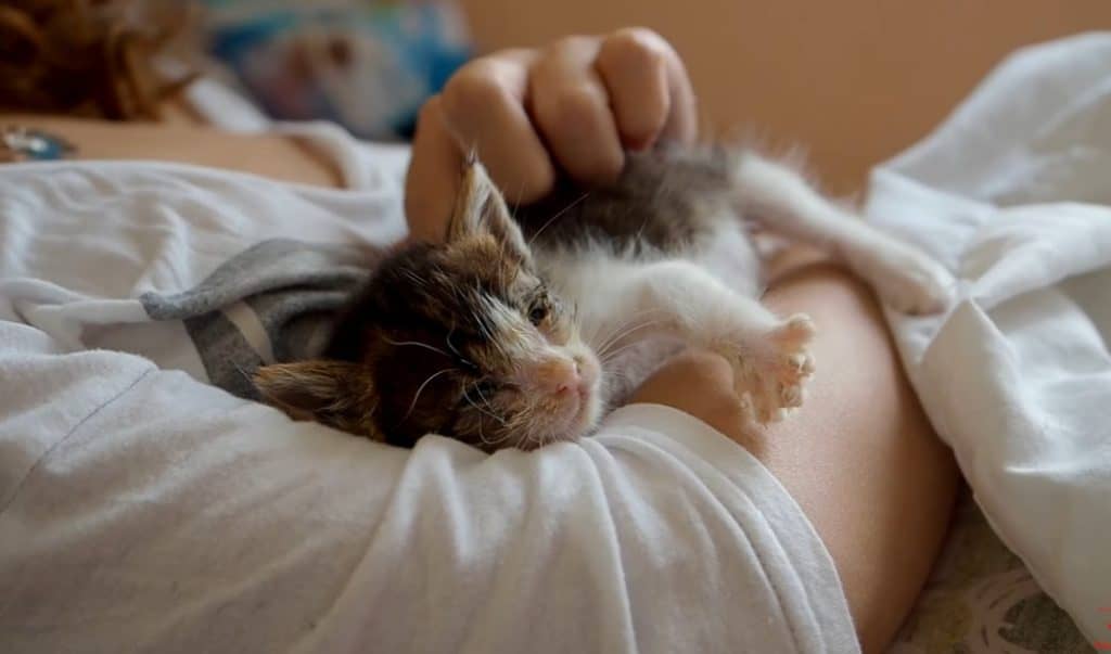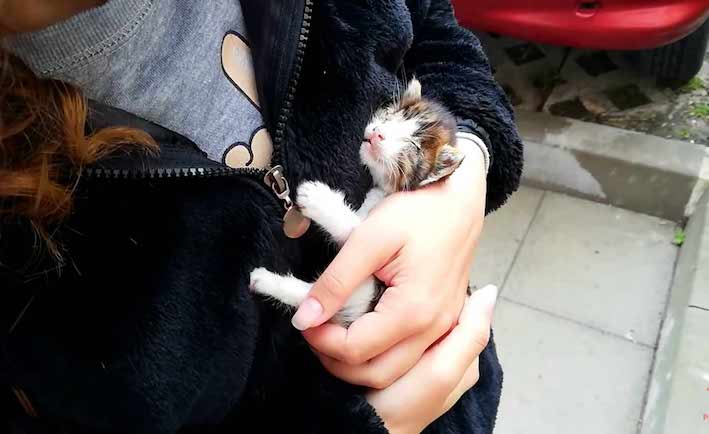 A kitten who found safe arms when she needed them most.
