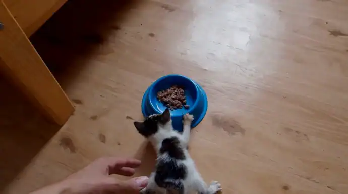Under their care, the kitten continues to grow.