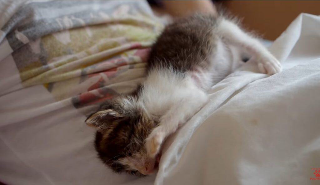 The kitten fell asleep almost instantly.