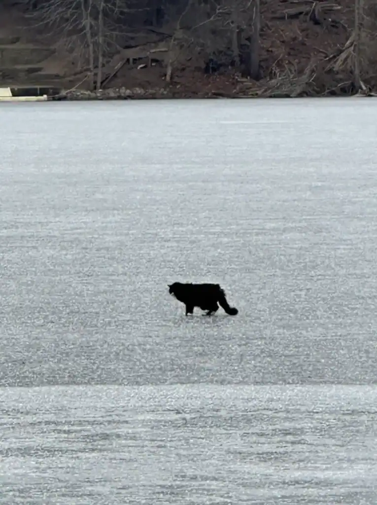 Jon and Melaney later said they still can’t believe their beloved senior cat made it through the freezing lake with no lasting injuries.