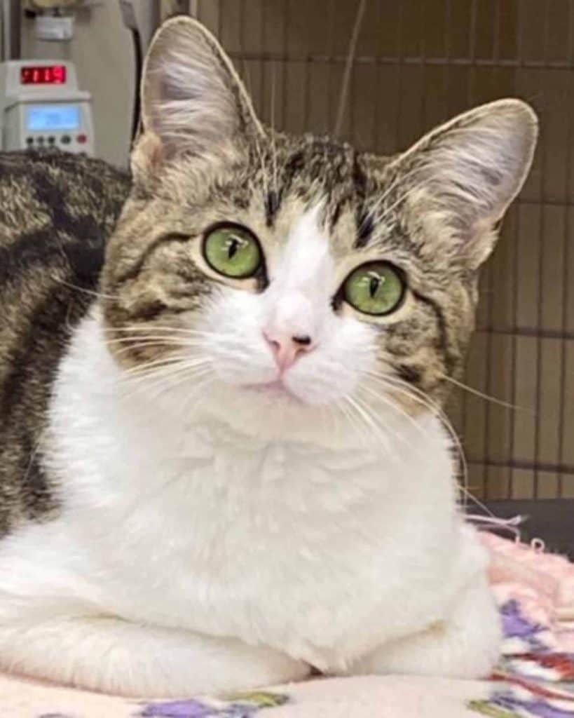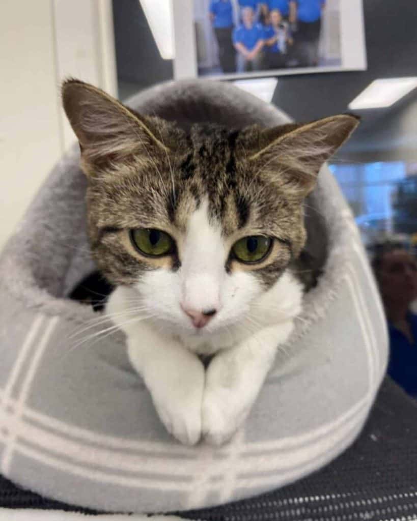 She is a therapy cat now, giving comfort the same way others once gave comfort to her.