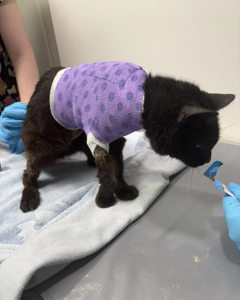 She purred even when wounds were cleaned.