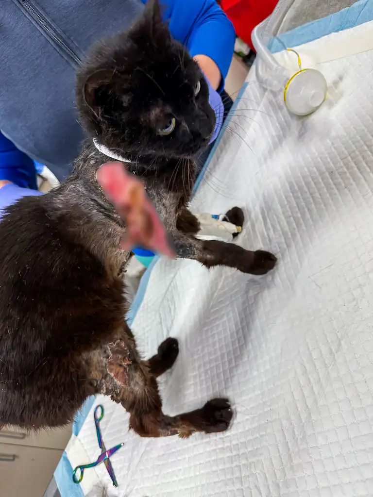 They saw a cat who still leaned into soft hands.