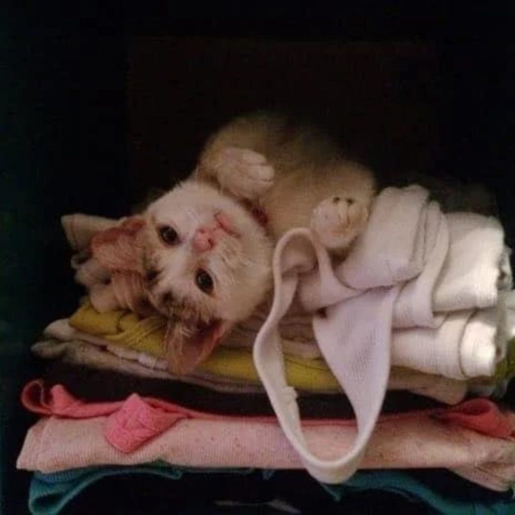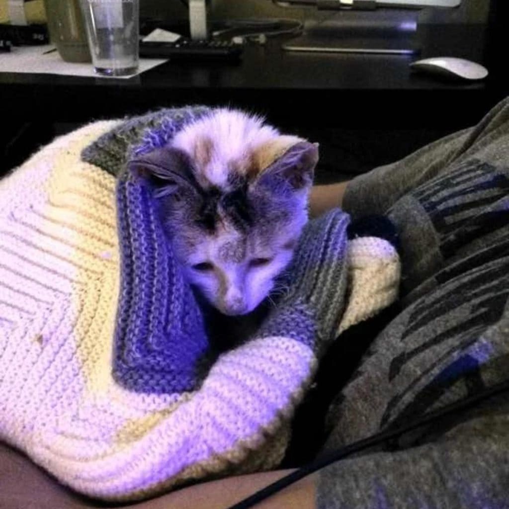 The little cat who once hid inside broken junk now spent her days wrapped in love, comfort, and warm blankets.
