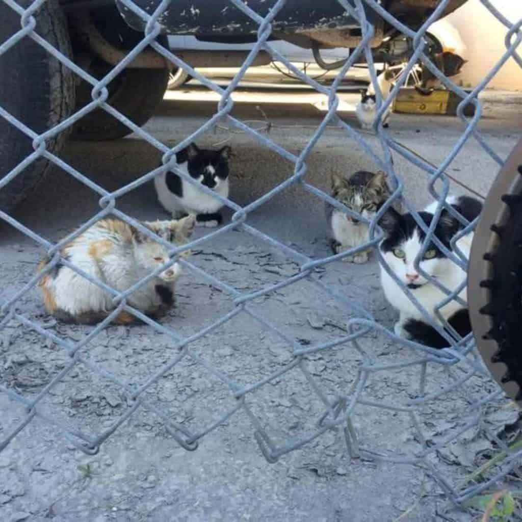 Her fur was so dark and clumped from motor oil that they could barely see her true colors.