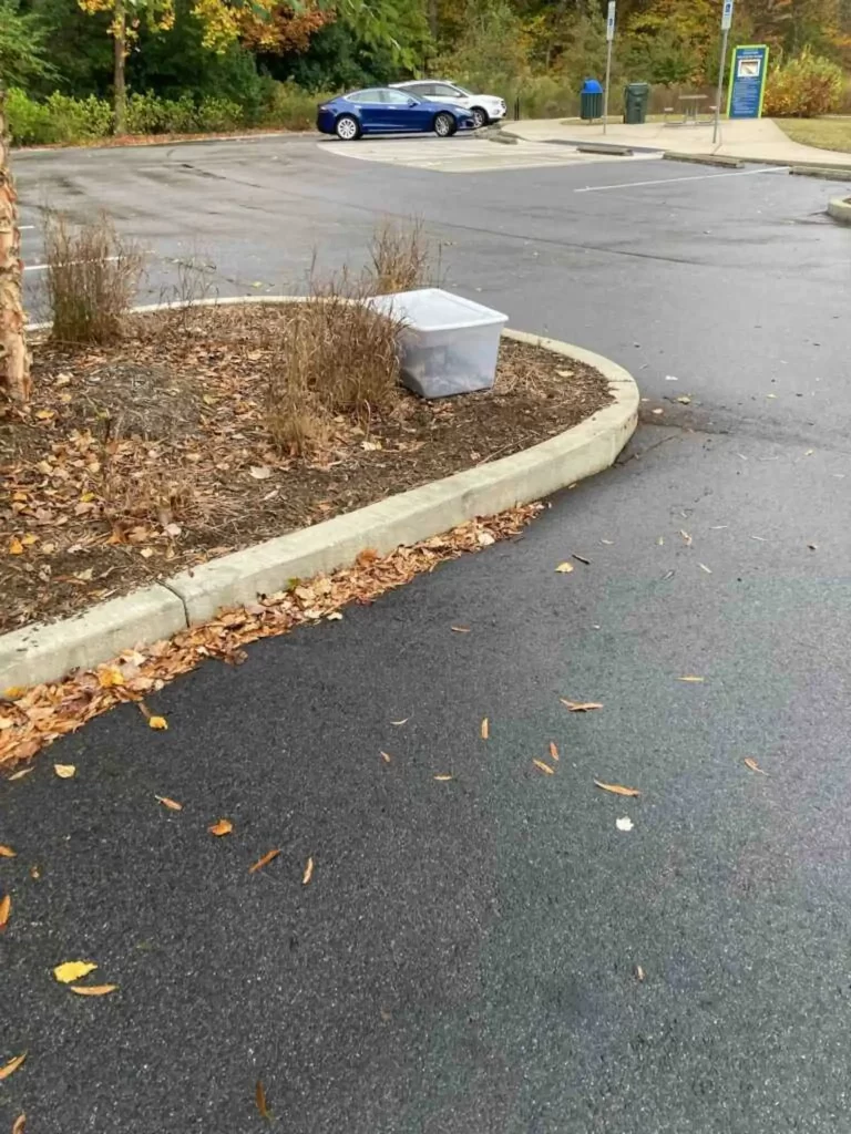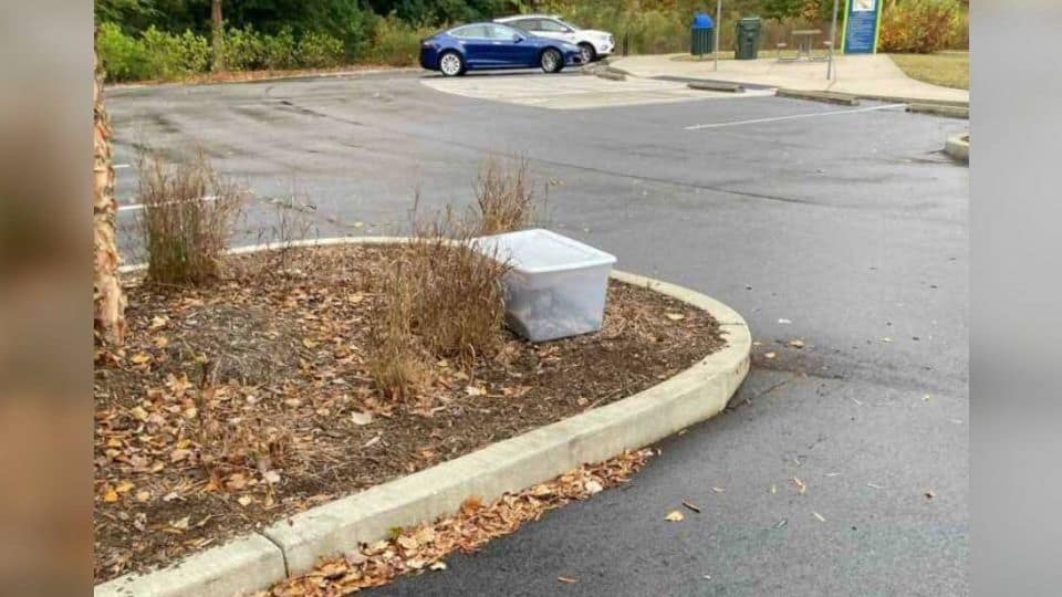 The parking lot was nearly empty, but something unusual caught their attention. A clear plastic container sat strangely out of place, its lid pressed firmly down.