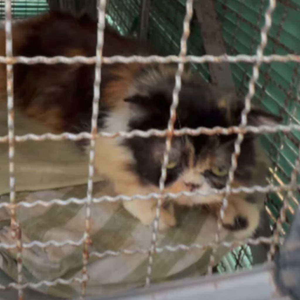 For thirteen long years, this cat had lived locked inside an enclosure.