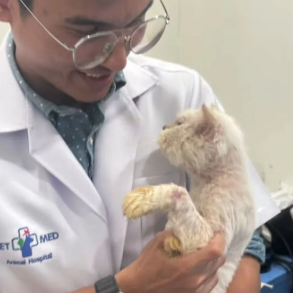 Her fur was matted with dirt and dried blood from constant flea bites.