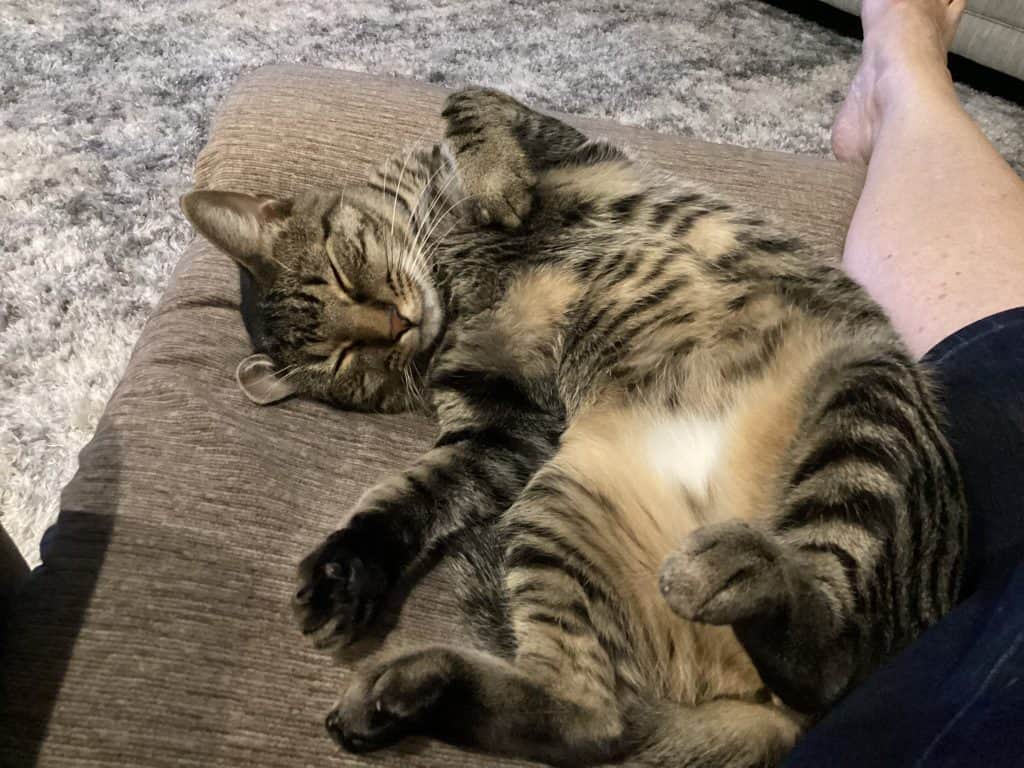 Today, Ellie is safe, warm, and back to cuddling with Jan as though nothing had ever happened.