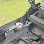 Working together, one of the residents managed to loosen part of the car’s underbody, creating a narrow opening just big enough for a small paw — and then a little head — to appear.