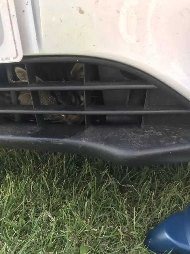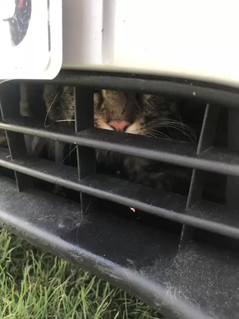 As he moved closer, realization struck — a cat was wedged deep inside the car’s front panel. Somehow, the small creature had managed to crawl in and stay hidden through miles of travel.