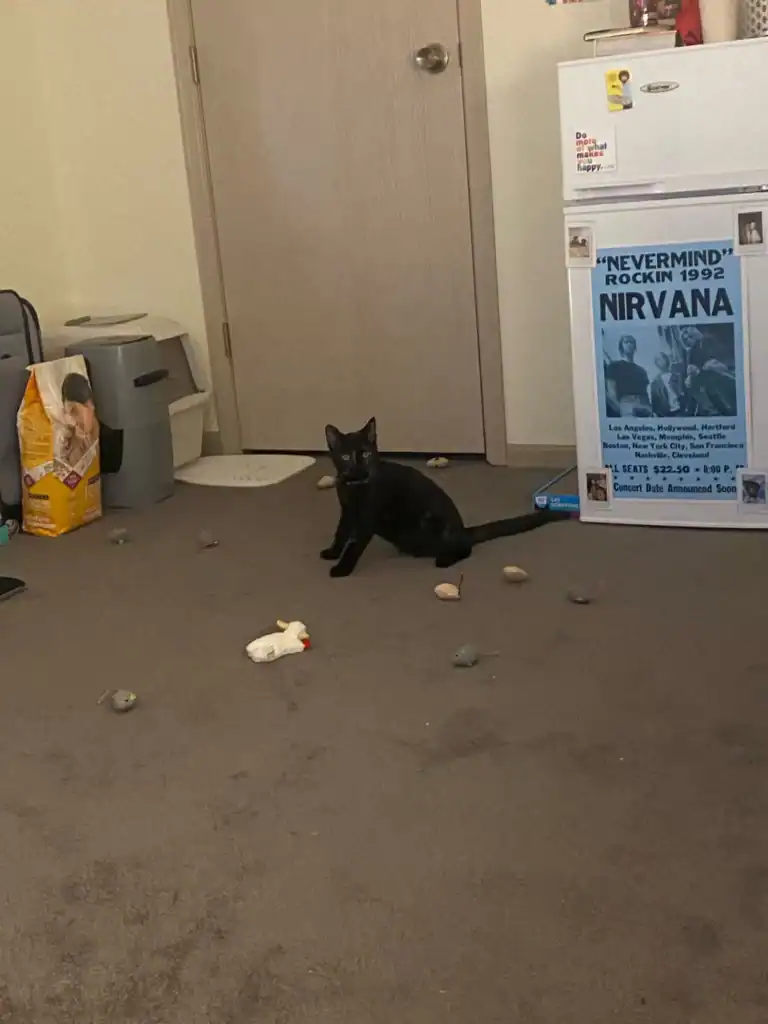Even when Sophia had to leave for class, Goose’s loyalty didn’t waver. Her roommate Maysa tried to distract her, but the playful cat kept slipping away to rejoin her new companions.