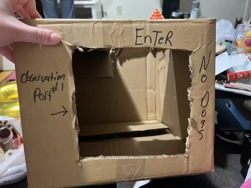 With scraps of cardboard and a few clever hands, they began constructing a tiny box fortress.