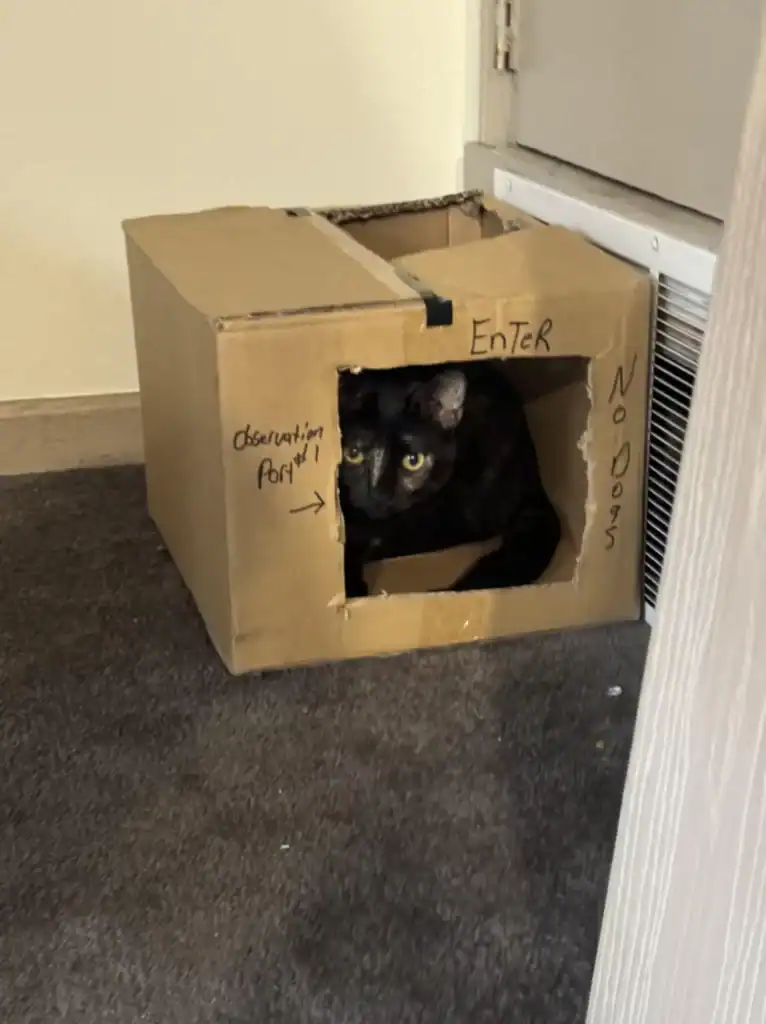 Moving day was busy, and somewhere between boxes and furniture, Goose’s beloved cardboard fort didn’t make the trip.