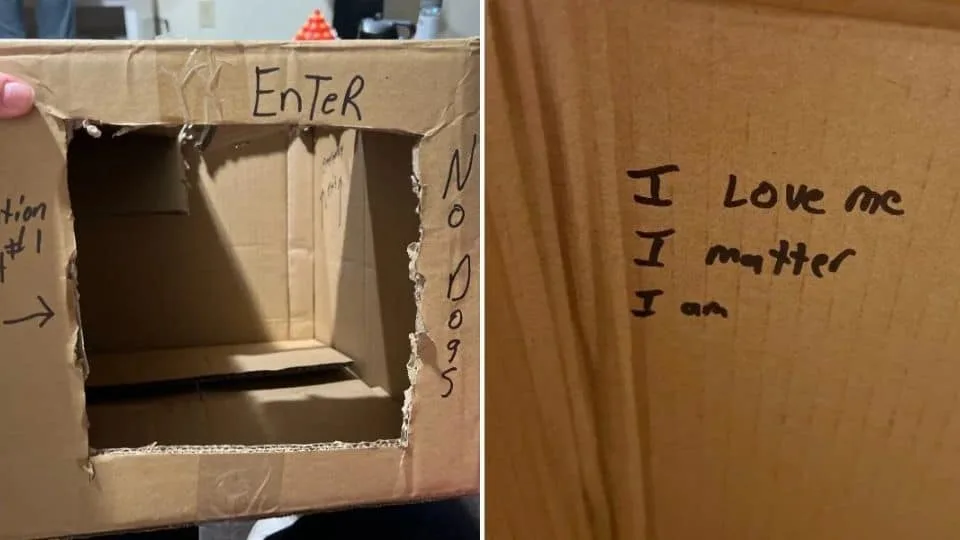 With scraps of cardboard and a few clever hands, they began constructing a tiny box fortress.