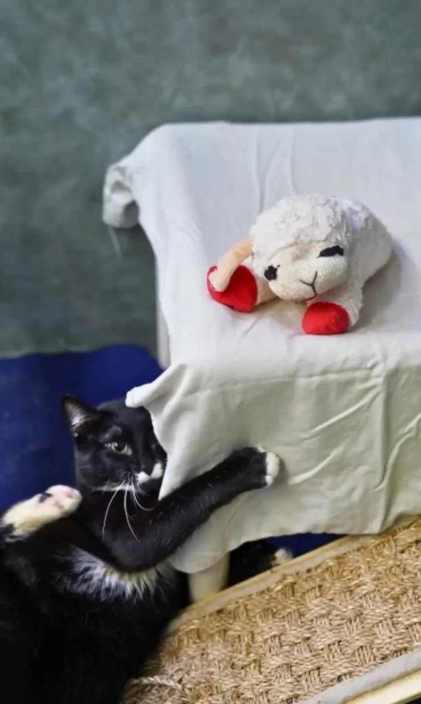 For now, Lamby curls up with her flock of lamb stuffies, the toys that remind her she is never truly alone. But her story is far from over. Somewhere out there is a person who will see her not as a challenge, but as the extraordinary cat she is.