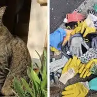 Shy Gray Cat Left Alone in Northridge With Only a “Free” Sign and Food Finds Safety