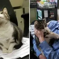 She was a tiny tuxedo cat with tired eyes. At my work site, people whispered about her. They said she had kittens once. They said …