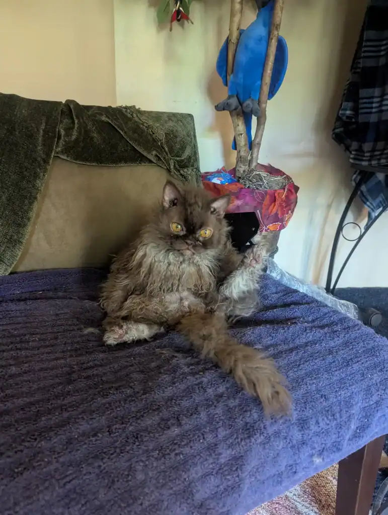His health improved, his fur grew thicker, and his confidence soared. People would stop by her apartment and stare in amazement at the unusual cat lounging like royalty on the couch.
