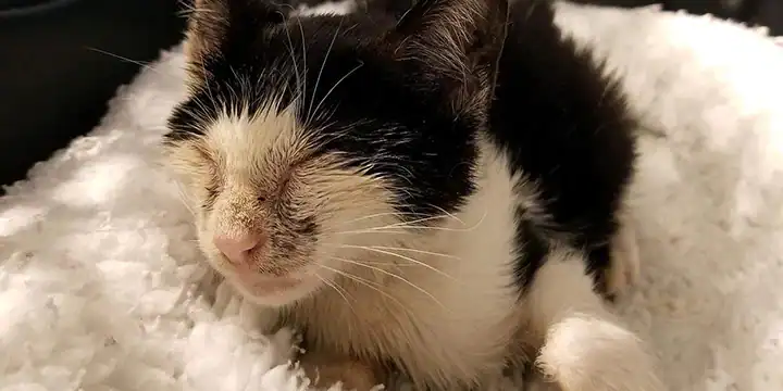 At the vet, bright lights made his eyes sting, but help had already begun.