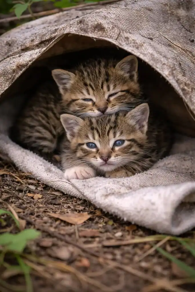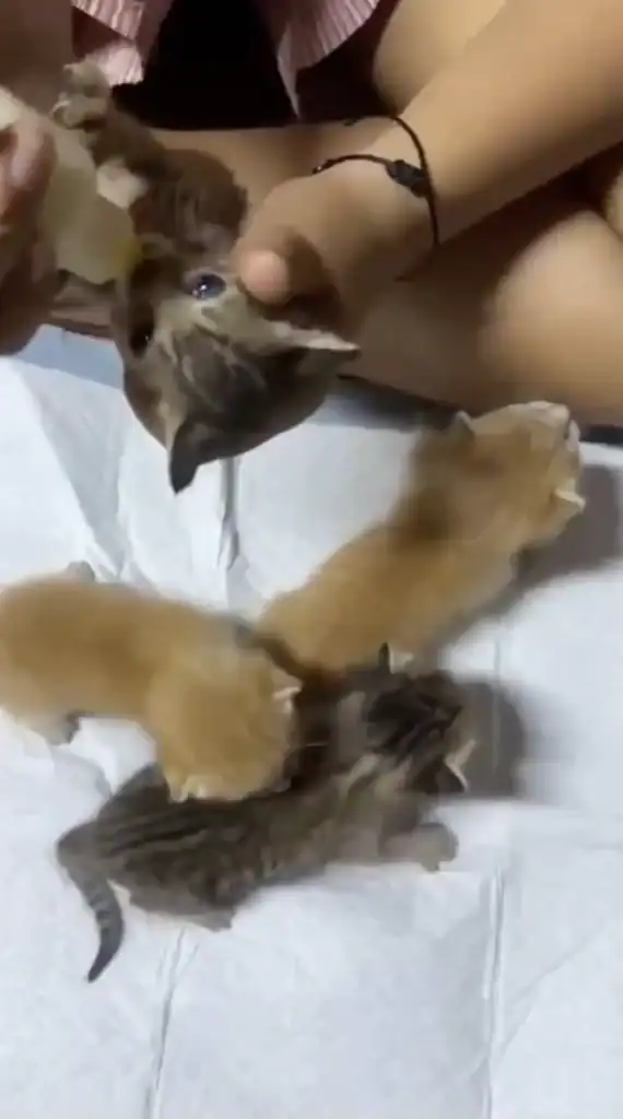 Inside were five tiny kittens, squeezed together, struggling in the dark.