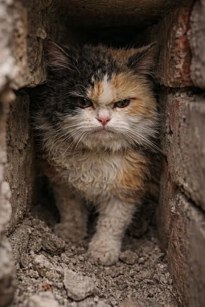 Inside the dark wall, the calico thought about warm floors and sunny windows.
