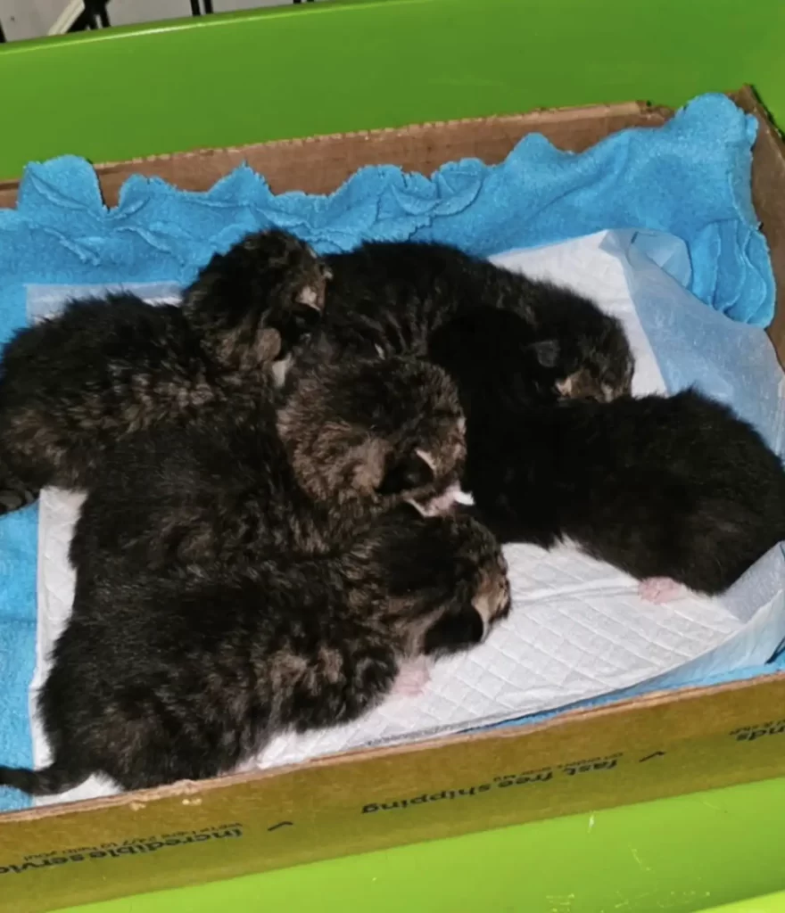 He called his close friend, Deb Oliver, an experienced foster who had raised countless bottle-fed kittens before. Within the hour, the babies were settled safely at Deb’s home, wrapped in blankets and fed warm formula from tiny bottles.