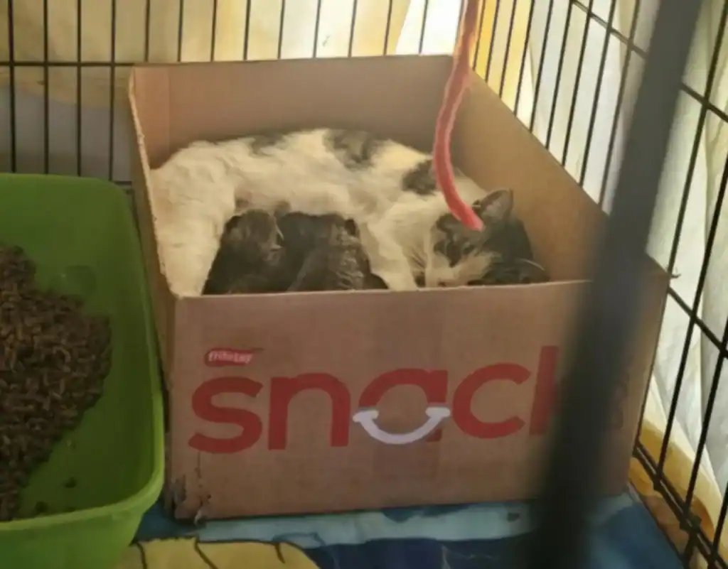 The moment the kittens heard her soft meow, they stirred awake, wriggling toward her. She immediately began to groom them one by one, pulling them close to nurse. After days of separation, the family was whole again — their tiny cries now replaced by the gentle rhythm of purring.