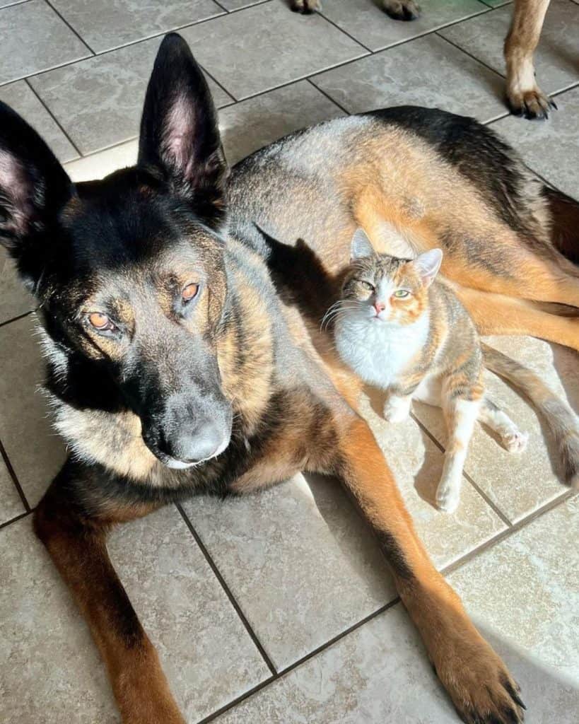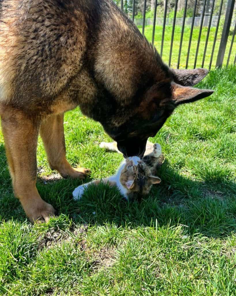 Seeing her big dog be so gentle with such a tiny kitten moved her in ways she never expected.