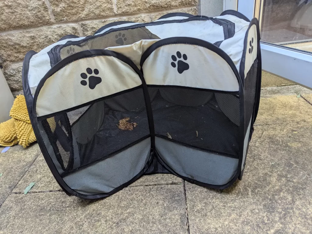 It was an ordinary morning when a passerby noticed something odd on the side of a quiet street. A worn-out playpen sat alone, its fabric faded and filthy, as if discarded and forgotten.