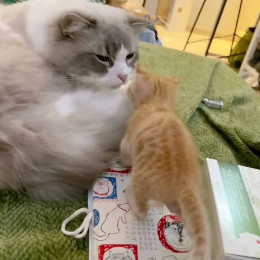 Soon he met Bubble, the woman’s fluffy ragdoll cat, who welcomed him with gentle nudges and soft purrs.