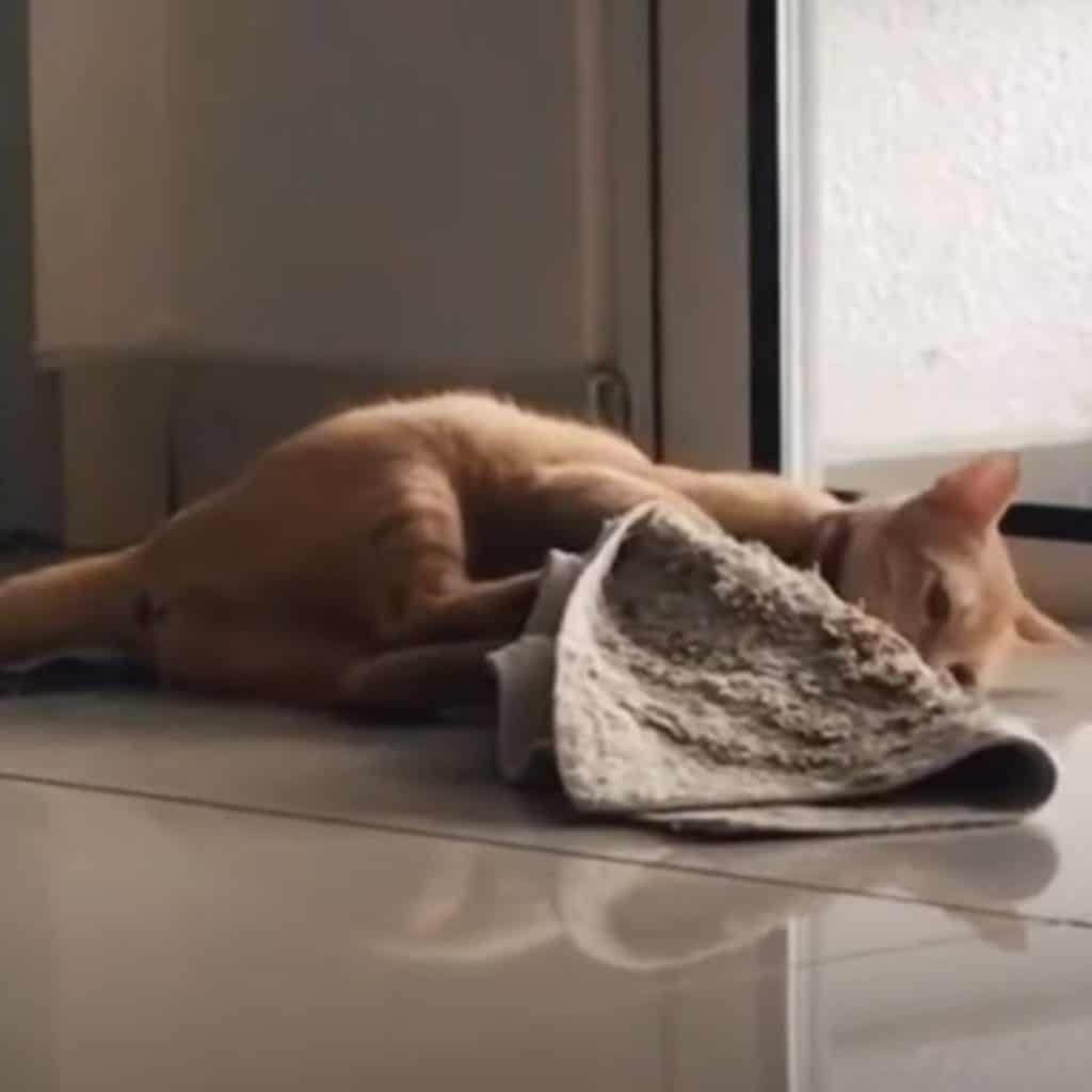 Inside the warm apartment, the kitten relaxed almost immediately.